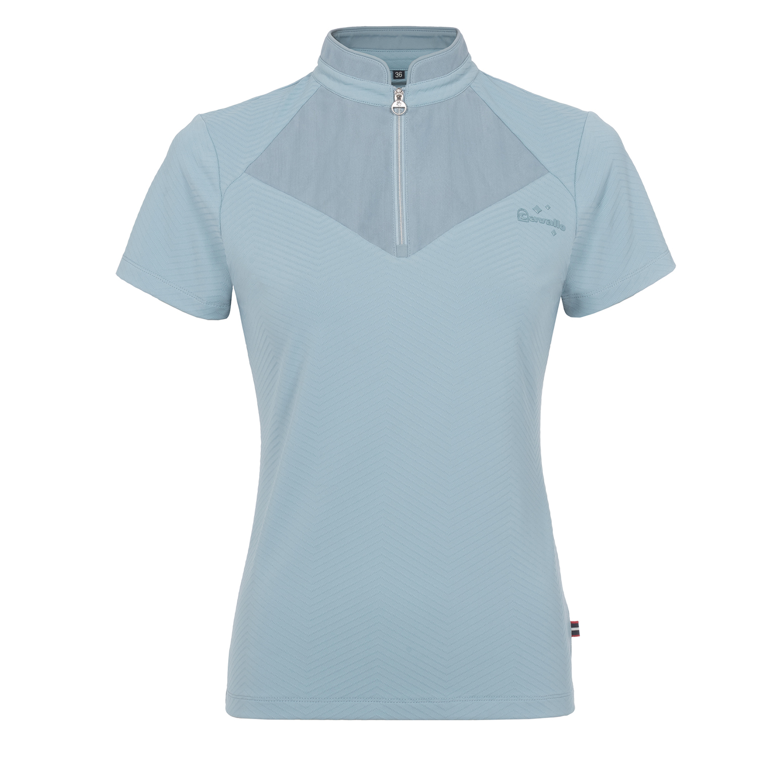 Das kurzärmelige Trainingsshirt CAVALBRITNY kombiniert funktionales Jacquard-Material mit tonigem Mesh und sorgt so für maximale Atmungsaktivität beim Reiten. Der Stehkragen mit kurzem Reißverschluss und Schmuckanhänger mit Kristallstein verleiht dem Shirt eine sportlich-elegante Note und macht es ideal für Training und Alltag.