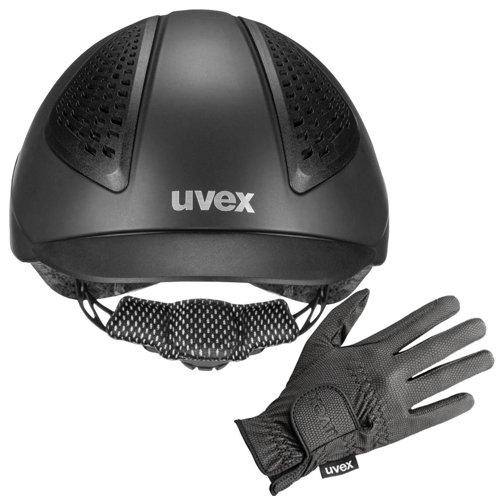 UVEX Reithelm exxential III inkl. Sportslye Handschuhe in black