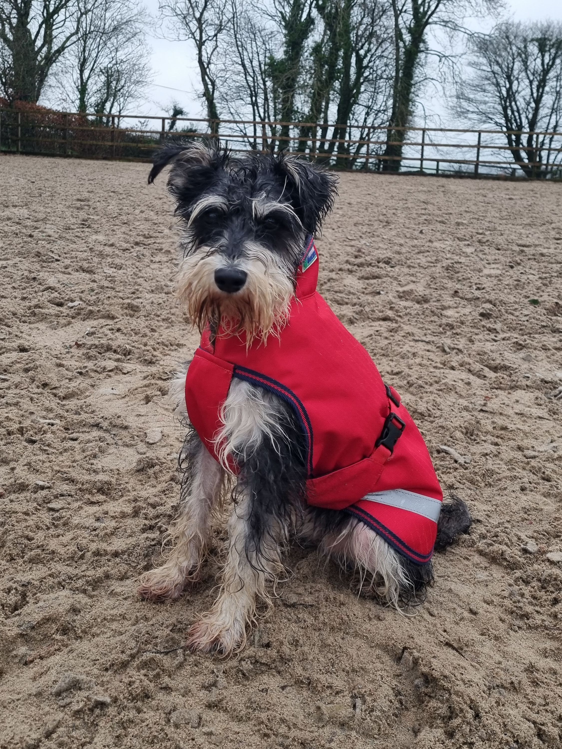 Die Decke verfügt über Reflektoren und einen verstellbaren Bauchlatz, der Brust und Bauch des Hundes sauber hält. Hinten angebrachte, elastische Beingurte sorgen für den richtigen Sitz.
